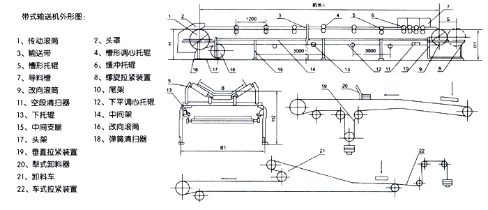 托輥是用無縫鋼管制成,類型有:槽形、平行,調心,緩沖四種,拉緊裝置:螺旋式拉緊裝置適用于長度較短(小于100m),行程有500m、800m、100mm三種;垂直重錘拉緊裝置,可隨著張力變化靠重力自動補償輸送帶的伸長;重錘車式拉緊裝置適于距離較長,功率較大的輸送機,其拉緊行程有2,3,4m三檔,固定絞車拉緊裝置用于長行程大拉緊力(30-150KN),長距離,大運量的帶式輸送機,拉緊行程可達16m。